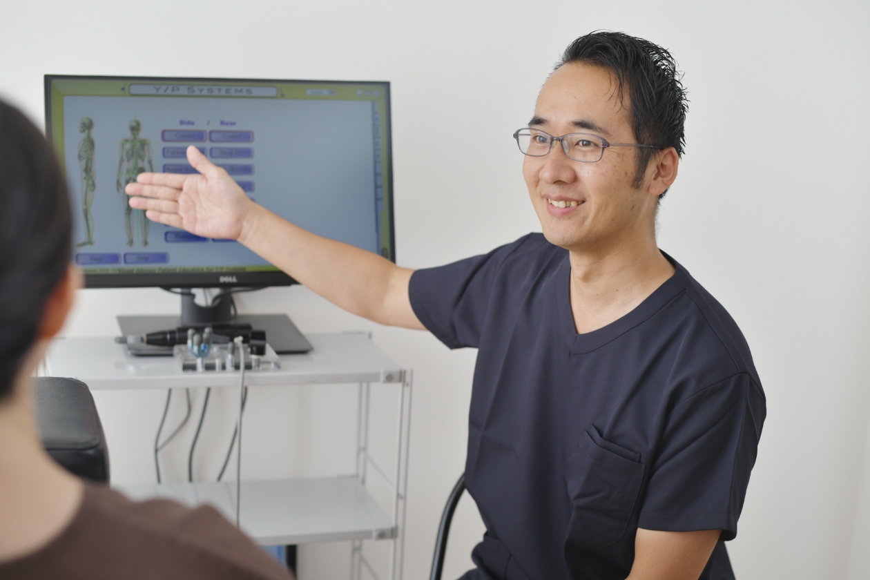 ご来館された患者様には丁寧にカウンセリングをさせていただき、検査を詳しく行い、なぜその症状が起きているのか、どうすれば良くなるのか、施術プランをお伝えしてお互いに納得した上で施術をさせていただきます。また治療後のアフターケアもしっかりさせていただきます。